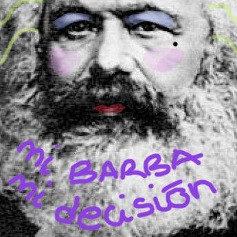 Porque sí queridas, maquillar a Marx como a una señora es indignante desde el momento en que vivimos en un mundo en el que es indigno ser mujer y utilizar los códigos y los roles socioculturalmente asignados a lo femenino. Que hubiese dado igual Marx, que Engels, que Sorel, que Kropotkin. Aplicar una estética queer para desnormativizar al autor de sus dogmas es suficiente para desenmascarar la misoginia y la transfobia de los compas de la clase obrera. Porque no he visto tanto ofendido cuando se han hecho miles de montajes con la cara del señor. Esto es otra cosa